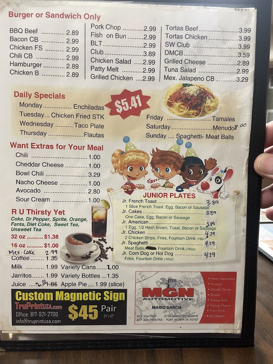 Patrons rave about the affordability and warm atmosphere, reminiscent of grandma's kitchen. Breakfast lovers can indulge in perfectly cooked sunny-side-up eggs, hearty steak and eggs, or tasty breakfast tacos—all at prices that encourage frequent visits. Customers appreciate the attentive service, making every meal feel special.
